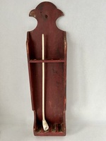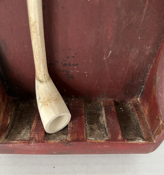 Red Painted Pipe Rack. A very nice vintage pipe rack. This pipe rack has nice Red paint. The pipes set in shallow well at the base of the rack and slide up thru holes at the top part of the rack. The pipe rack measures 21 3/4 inches x 2 1/2 inches deep at the well.