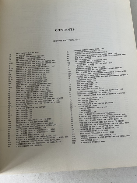 Book, The Old City. A very nice book depicting the early years and photographs of Jerusalem. The book measures 11 x 8 3/4 inches and in very good condition. Extensive Black and White photographs of Jerusalem.