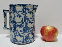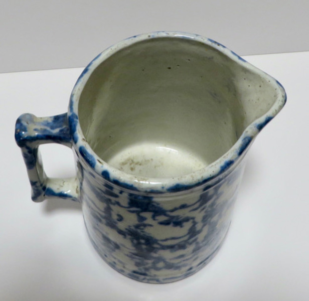 19TH CENTURY STONEWARE SPONGEWARE PITCHER – Circa 1850, this is an attractive stoneware spongeware pitcher. The form features dark blue sponging accented on the top, bottom and handle. The pitcher is decorated with rings strongly emphasized in deep cobalt blue. Used as utilitarian ware, the pitcher is in excellent condition. The pitcher is 6 1/2” tall and 5” diameter at the base.