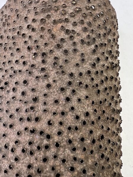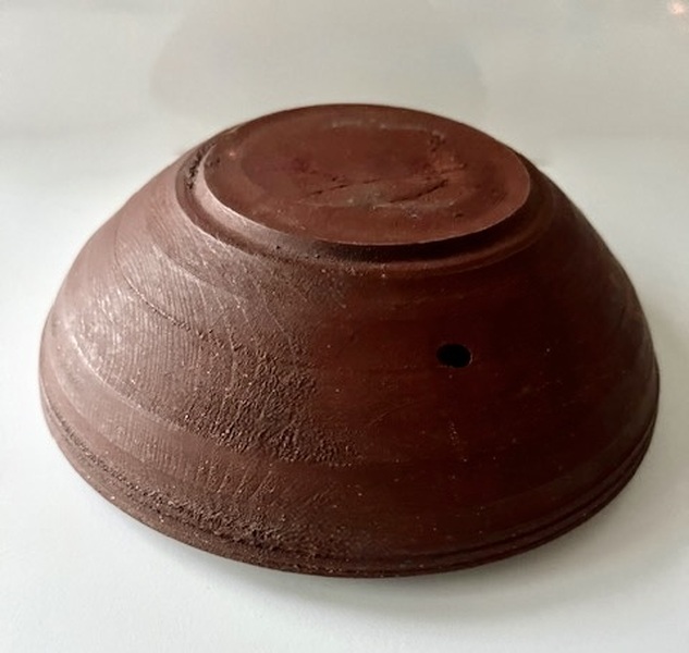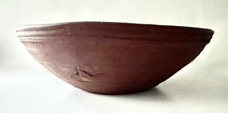 A sweet, small beehive bowl from the mid 19th. century. Small in size measuring only 7 x 6 1/2 x 2 inches. The best original Red Painted surface that has aged beautifully. American beehive, treen bowl. Please not the small hole in the bowl. It doesn’t look hand made to me, why it is there I can’t imagine unless it was used to pour out liquid. A sweet piece of American treen.