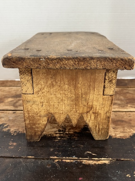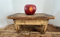 Sweet Little Painted Bench. Awfully cute 19th. Century painted bench. Constructed with square nails, the bench has its original dry Mustard paint and signed on the underside of the seat. The bench measures 12 1/2 x 7 x 6 1/4 inches. Excellent condition.
