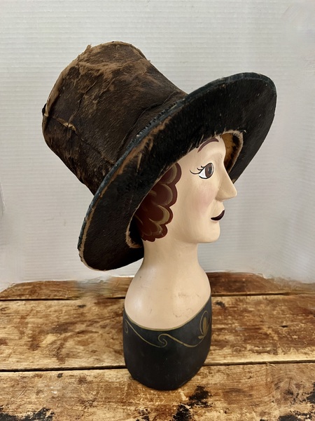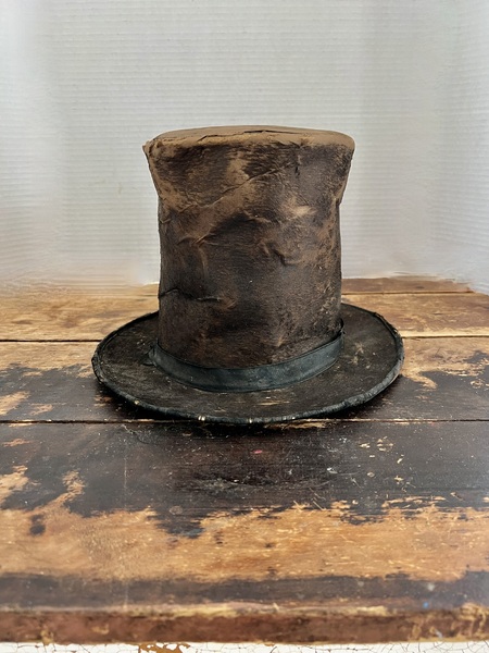 Intersting Top Hat. A vey nice, early Top Hat. The hat shows quite a bit of wear that actually adds charm to the piece. the hat is in overall good condition. It measures 12 x 11 x8 inches. $195.00 + shipping. 119/2025