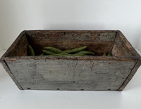 A very nice late 19th. century, Grey painted table box. The box is open and ready to hold all type of utilitarian items, apples, rag balls, etc. The box measures 12 x 7 1/4 x 4 1/2 inches. The Grey paint is perfect and the construction of the box is with square nails. American table box.
