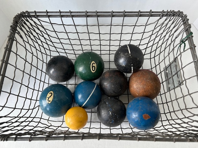 10 Architectural Balls. Not sure on the use of these balls. Despite that they have a great architectural look and the heavy wire basket adds to the overall delight. The balls are painted various colors and different sizes. Price: $25.00 + shipping