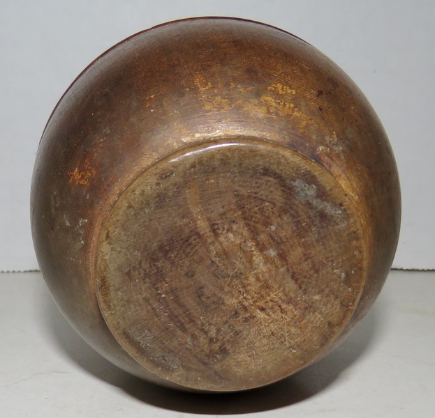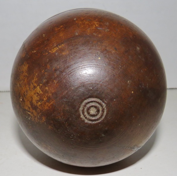 This is a very rare miniature maple burl bowl having been pole lathe turned with a gouged out inside bottom and a cut sprue on base. The surface has a super patina and color. The miniature bowl is 4” in diameter x 2” tall. Writen in period black ink on the rim are the initials H. O. G. A., possibly the owner, and the date 1774. Very rare to be dated and signed.