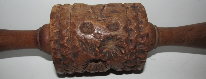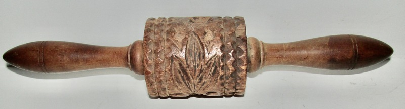 Butter or cookie roller print, maple, continuous roller, PA, 13 1/2” long with a 2 3/4” diameter x 3 1/8” wide roller, deep carvings of tulips, leaves, flowers, early to mid 19th century, rare and desirable. More photos available.