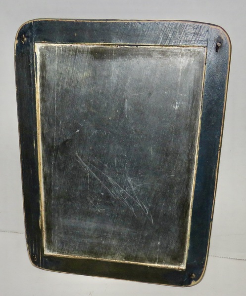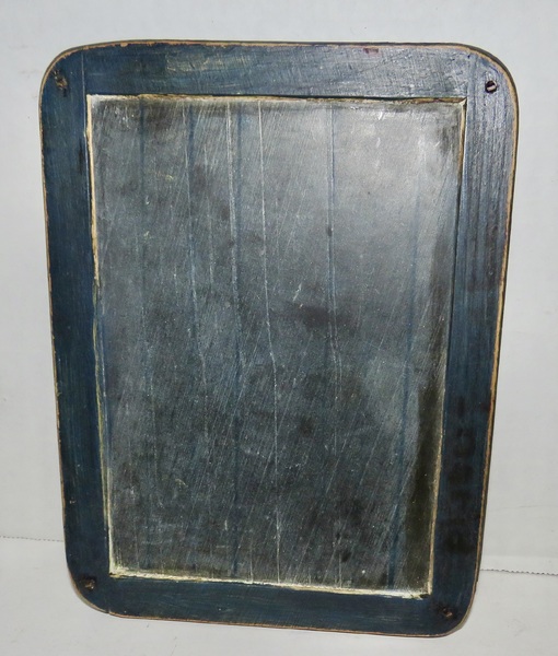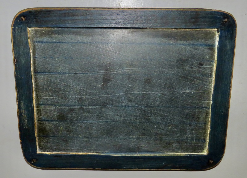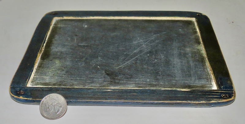 18th or early 19th century child’s 2-sided school slate board with original blue paint and wooden pegged construction. The blue paint has oxidized to nearly black. 8 1/4” x 6 1/4” x 1/4” thick. No issues.