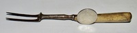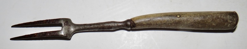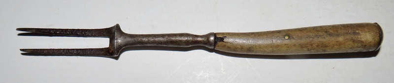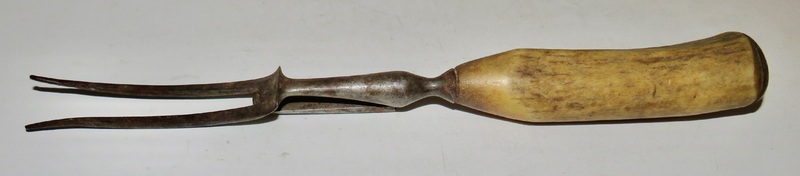 18th century, ca.1760-1780, two tine fork with a stag horn handle with iron cap. 7” o/a.