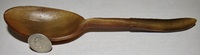Native American scoop or ladle. Maple wood with some light tiger grain. 13 1/2” o/a length with a 5 1/2” x 6” x 1 1/2” deep bowl. Wonderful patina and very smooth from wear. Handle end is untouched with great wear and patina. Minor chipping on edge of bowl and a very tight 1/2” crack. Early 19th century.
