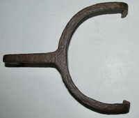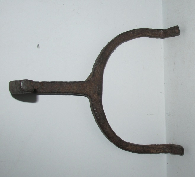 An essential tool found on the fireplace cooking hearth of most homes in the 18th century, was a forged iron pot pusher like this early example. They were used, as the name implies, to move pots and kettles around on the hearth when they were hot. This example is 7” x 6” wide x 2” tall. It has no issues and dates to the 18th century.