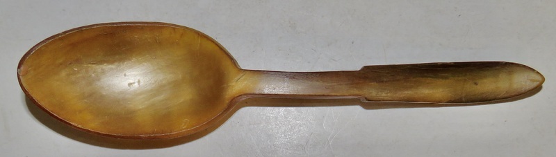 Offered is a not too often seen horn eating spoon. It is nicely shaped and is 8” long with a 3 1/4” x 1 3/4” bowl,18th century, no issues.