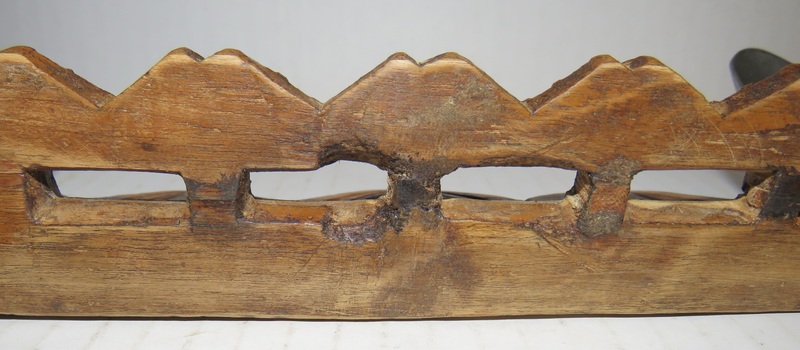 18th century garden string line measuring too. Wonderfully hand carved ash wood, mortised joints and wooden pegs to hold cross pieces. Minor roughness on top corner of handle from use. 10 1/2” x 4 1/4” x 3/4”. Rare to find this nice. Northern VA collection.