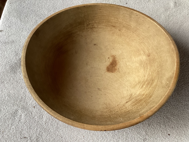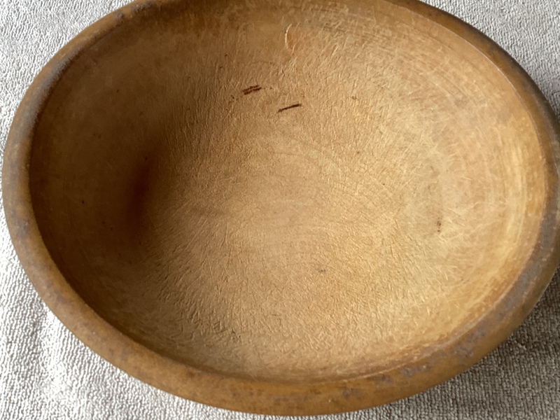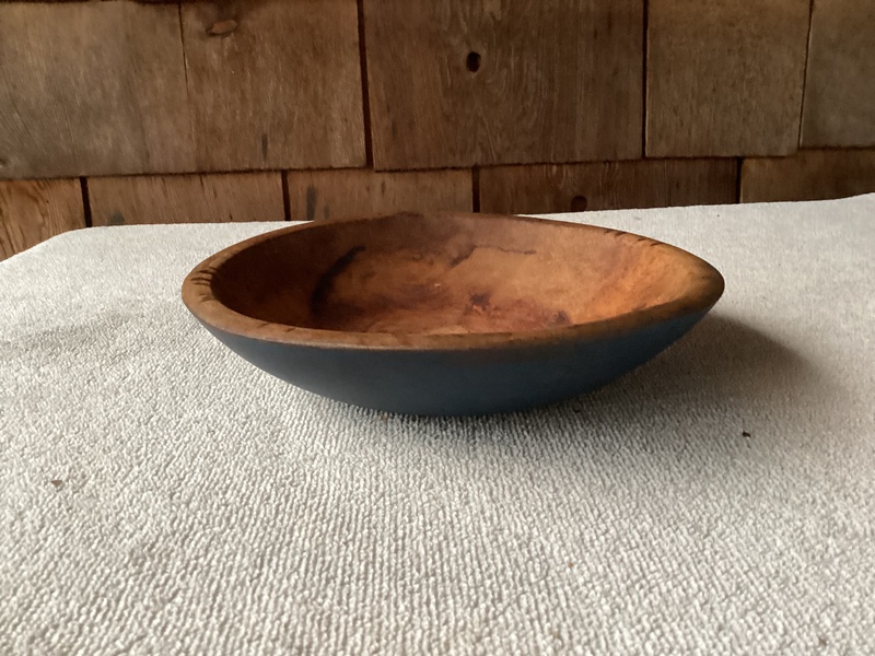 From a Maine collection. Early Turned Bowl with Old Original Soldier Blue Paint. Out of Round. No cracks. Measures 8 3/4”. More pics available.