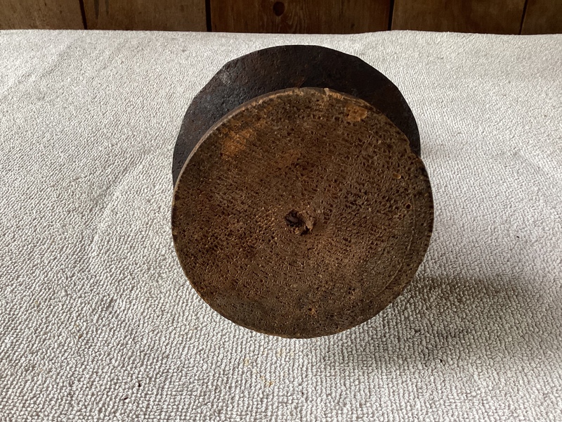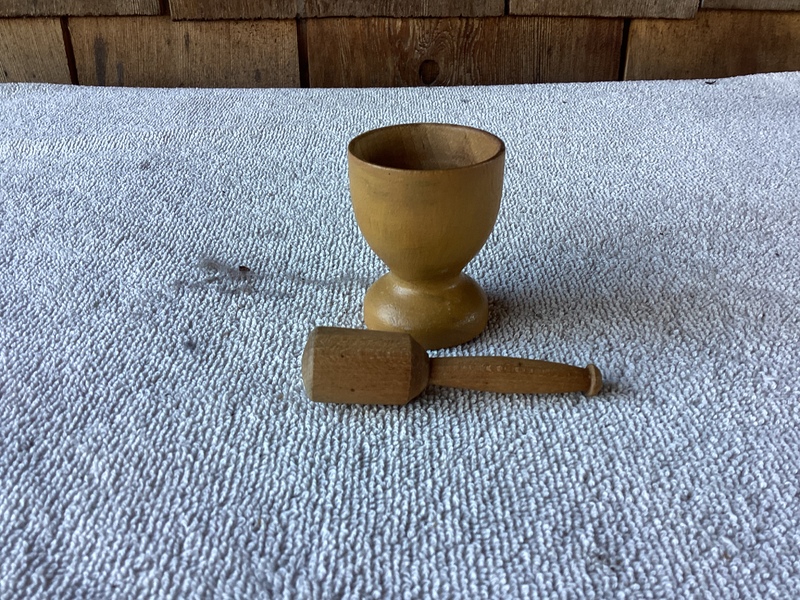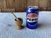 Rare hard to find Herb Mortar and Pestle. Original Mustard Paint. Good Patina. Measures 2 1/4” tall. More pics available
