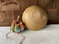 Great Old Early Bowl. Out of Round. 11” diameter. Old Original Mustard Paint. Lots of Chop marks. New Hampshire find. More pics available.