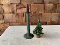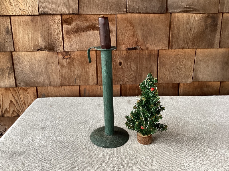 Early Painted Hogscraper Candle Holder with Chair hook. Measures 9 1/2” tall. Original Green Old Paint.more pics available. Tree not included.