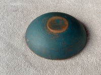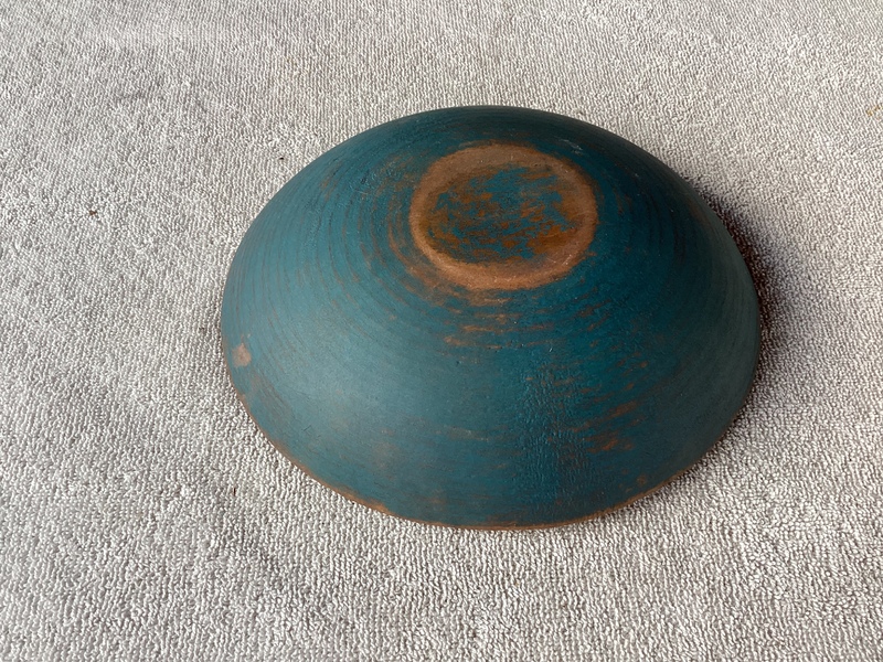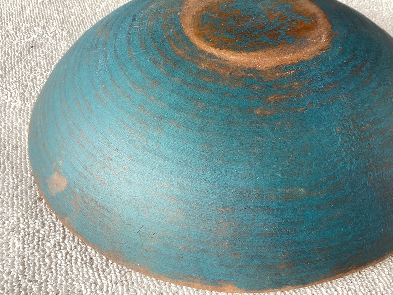 Early New England Turned Bowl. Out of Round No cracks. Beautiful turn lines with nice Old Blue Paint. More pics available