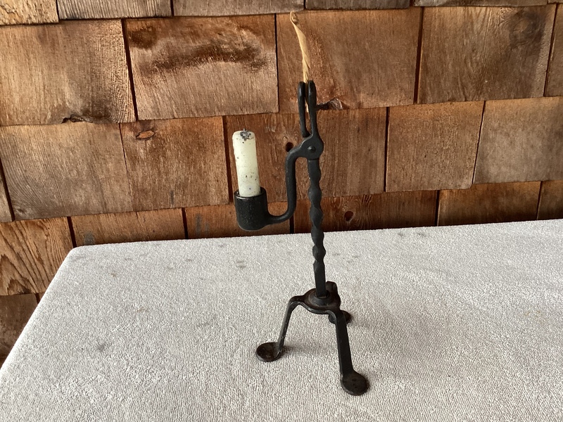 Early Iron Candle Holder Rush light. Has Penny Feet, twisted base. 11 1/2” tall. From a Private early lighting collector. More pics available