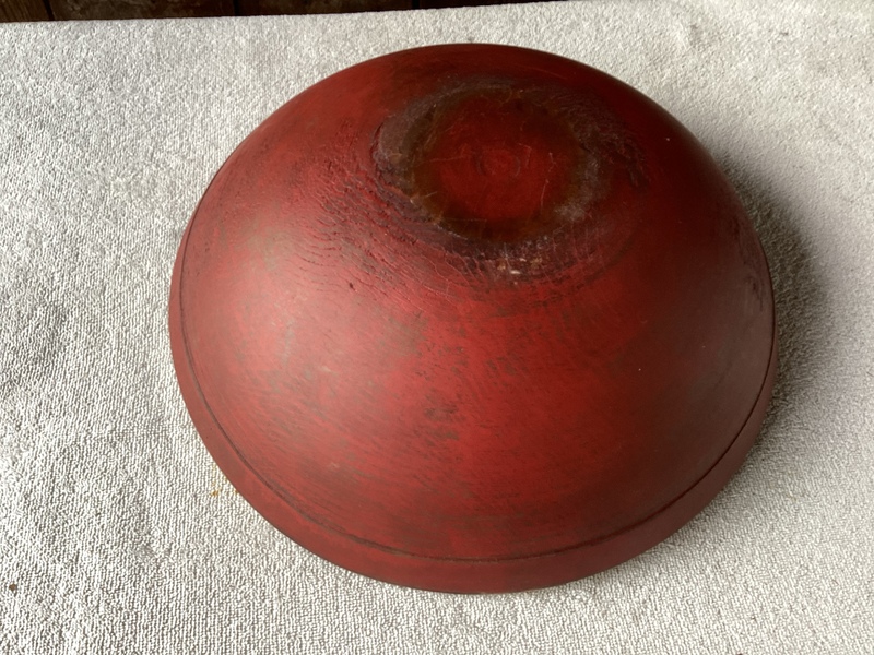 This Stunning 1800’s Turned Bowl with Rim is Out of Round and has no cracks. A great example with beautiful Old Original Red Paint. It measures 15” in diameter. One of my great New England finds. More pics are available.