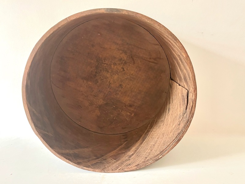 This 19th New England Grain Measure was crafted and signed by E.B. Frye, Wilton, NH. Measures were painted so owners could distinguish them in markets and mills. It is in very good condition. The paint is most likely early 1900's. It shows good wear, the straight seam is tight with no loss. 9" diameter x 5" h. We offer a layaway plan.