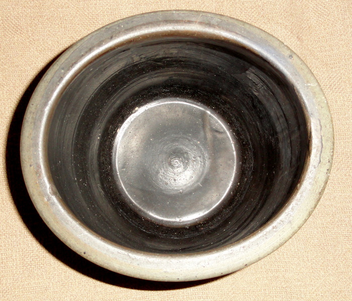 A large 14" x 6 1/4" tall late 19th C. bowl with 6 narrow bands and entire interior in white slip. One small very shallow chip on top rim. It's rare to see an American made bowl with a white slip interior such as this one. A very nice bowl.