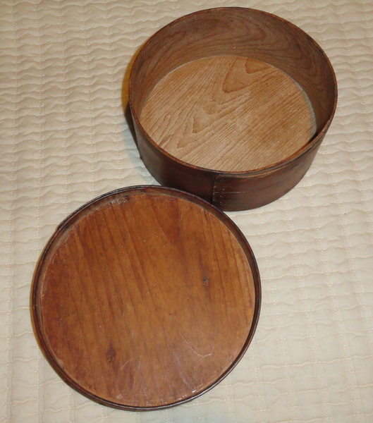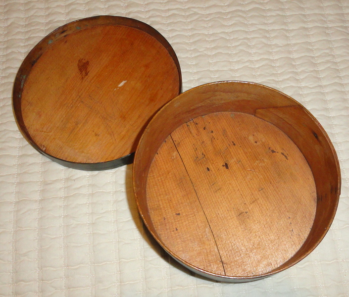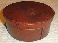 A 19th C. 7 1/4" diameter pantry box in excellent condition retaining an old red painted surface.