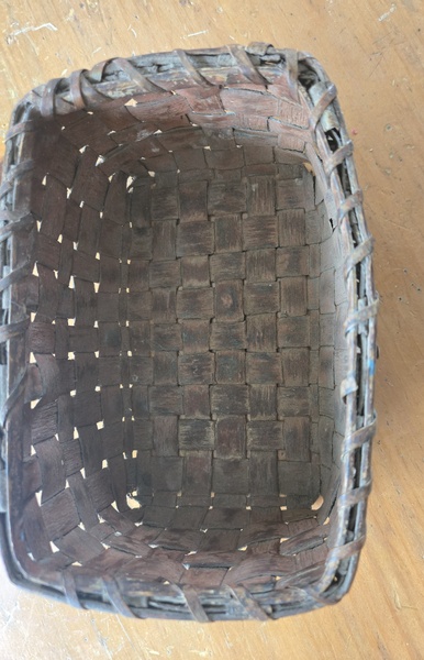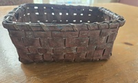 Here is a great old painted native American basket. A small red over blue painted basket in very good used condition from my own collection. It measures 7 1/8 in. Long, 5in wide and 3 in.tall. please ask if you would like more photos.