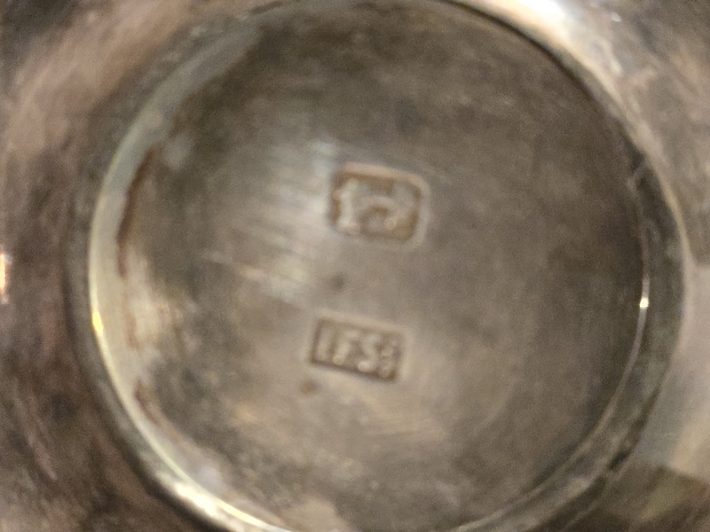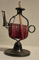 This diminutive silverplated , circa 18th-19th wax jac is complete with wax and snuffer. A copy of this wax jack is seen in the Smithsonium museum. It is signed on the bottom IFS Ltd. Israel Freeman & Son with the "hand and hammer symbol. It is 6 inches tall. It is complete and in good condition. One like this sild for $1200 at auction.