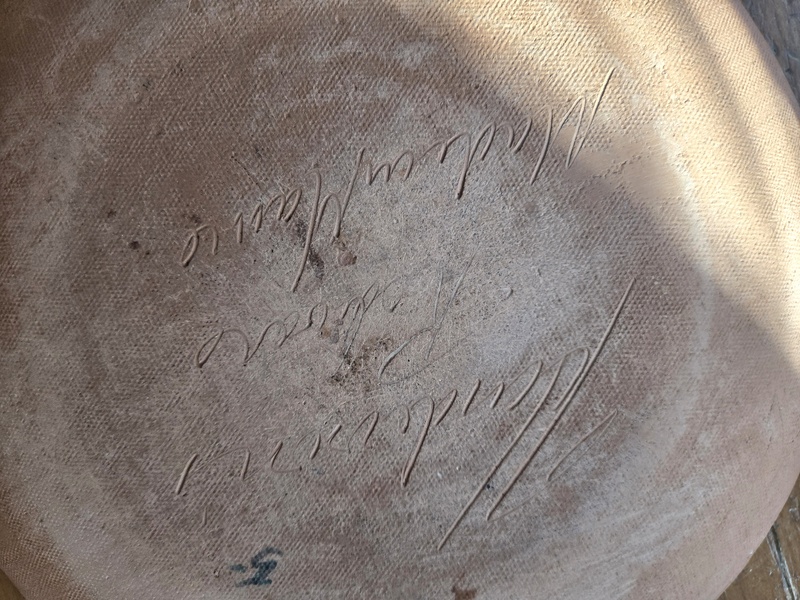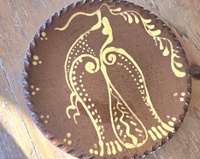 This nice reproduction red ware plate was made and is signed by Henderson of Bangor Me. The plate, in excellent condition, measures 9 1/4 in. in diameter and has a coggled edge.