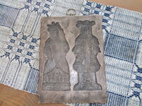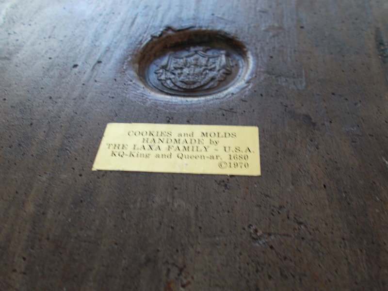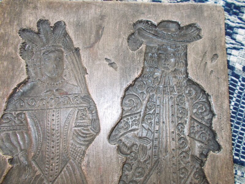 Offering a wooden cake board, carved with King and Queen from 1690. Made in 1970. Hanger on back. Measures 9" x 12"