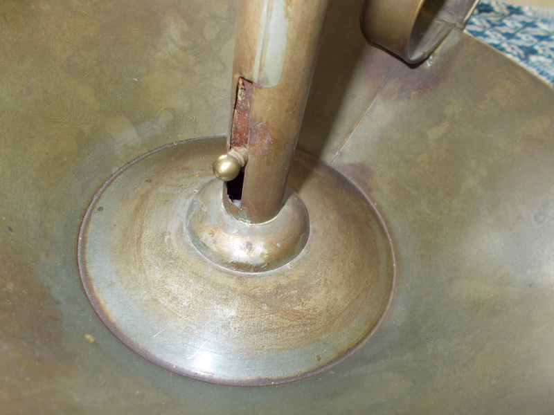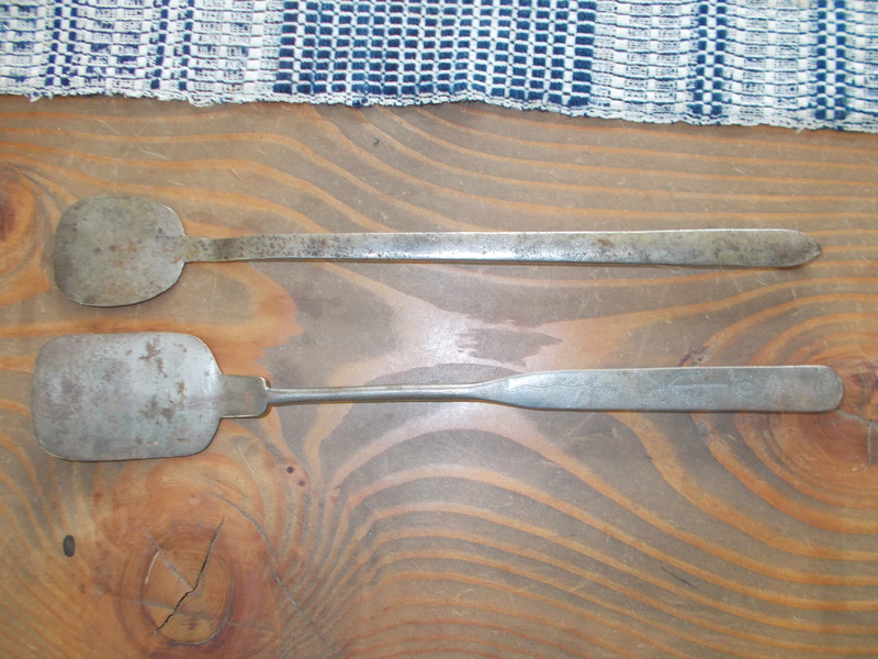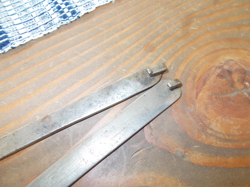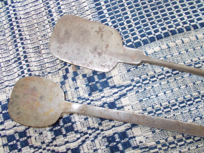 Small and delicate iron trammel, pair of early cooking utensils, leather wallet and cobalt blue chamber lighting. All Free shipping. Three photos below.
