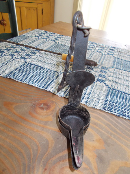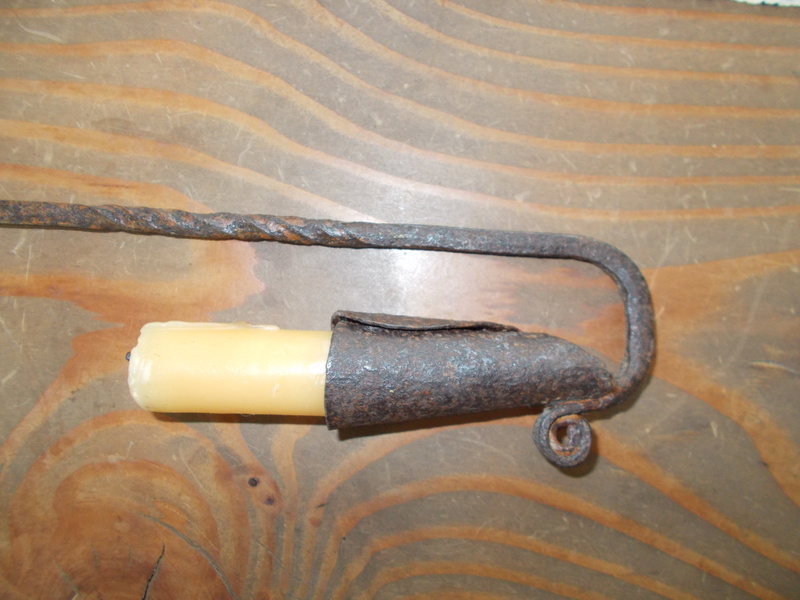 Offering a late 1700's iron hanging candle loom light, 14" long. Twisted rod and excellent condition.