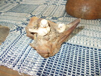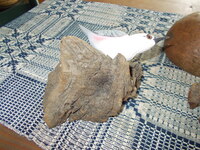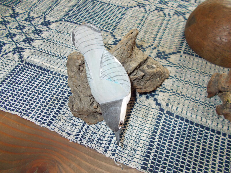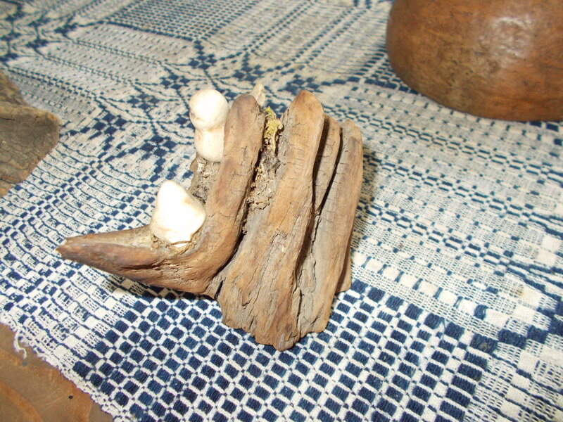 Carved birds on two driftwood stands by carver Edsel Martin, Native American mud bowl and powder horn. Happy New Year!!
