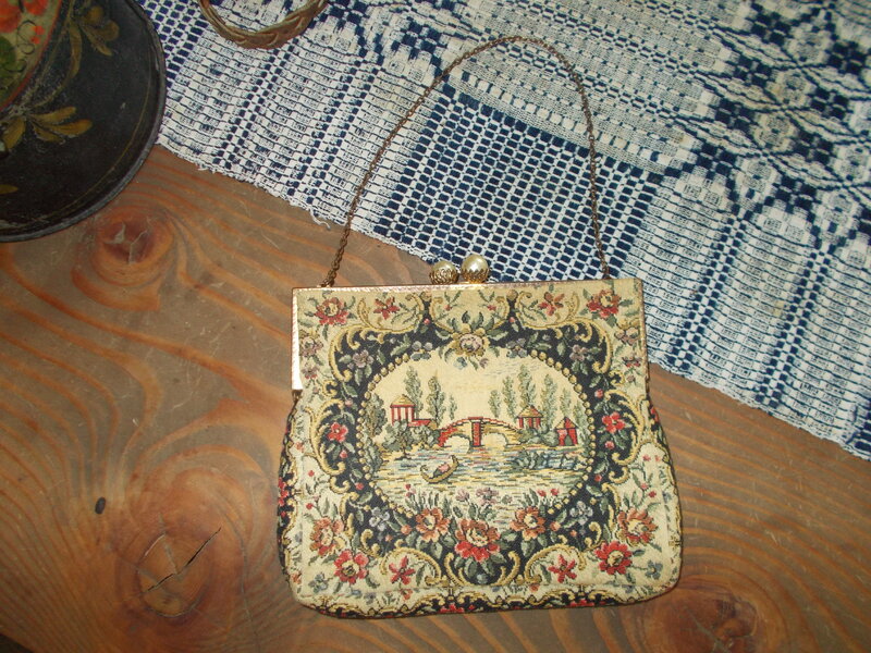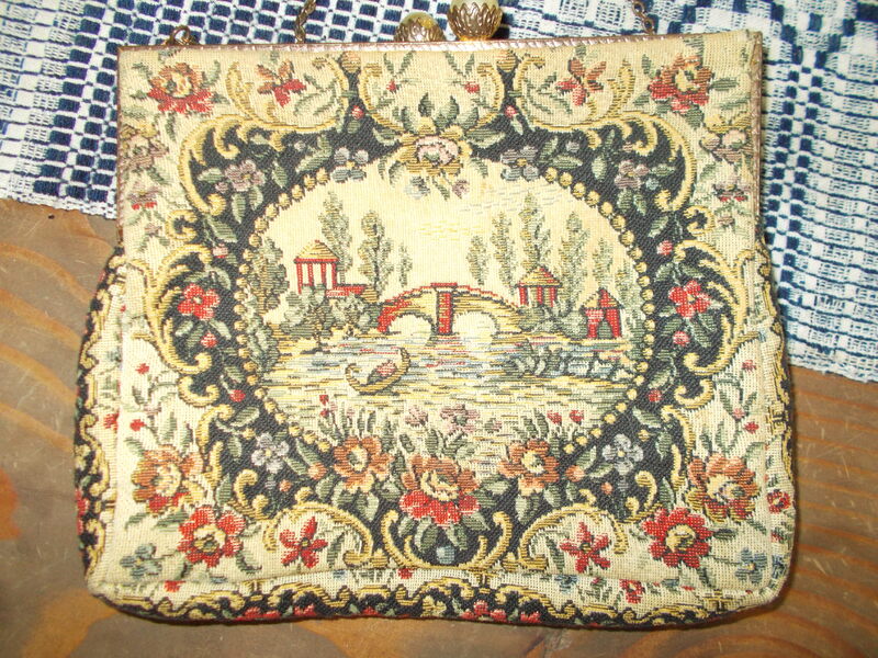 Offering a little purse with original inside label, stating Walborg France. Measures 6" x 5-1/2", Pearl clasp.