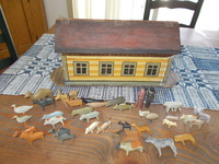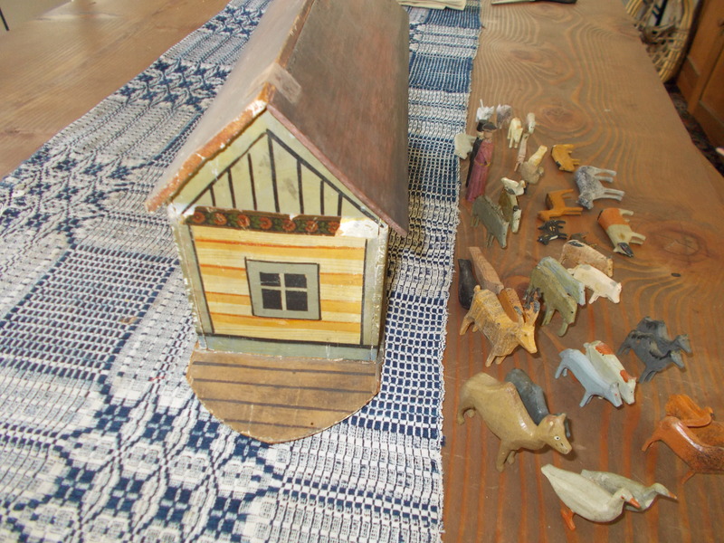 Offering a 15" long x 7" tall German Noah's Ark along with 36 animals, most standing and Noah and Wife. Found in Mass. Lovely, original condition.