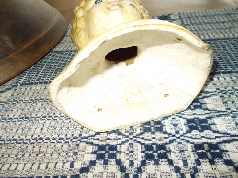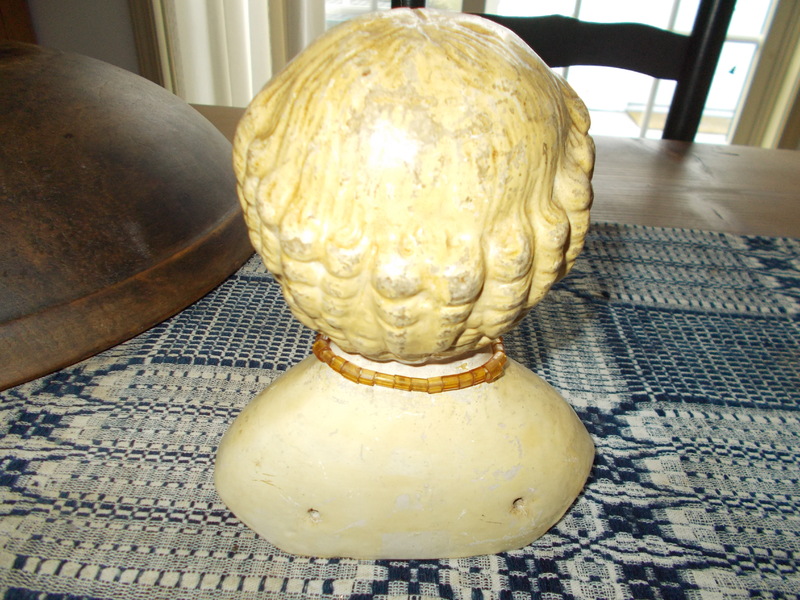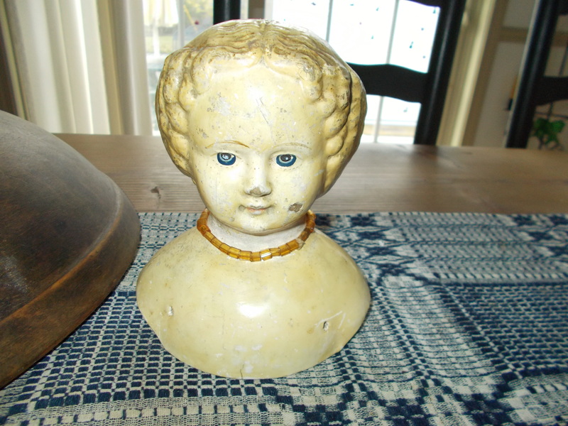 Offering a paper mache doll head, made in Germany by the Greiner Company in the mid 1800's. Extra large size, measuring 6" wide at the shoulder and 6-1/2" tall. No label.