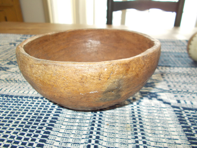 Offering a Native American mud bowl that at first glance appears like burl. Measures 5-3/4" diameter x 3-1/2" tall.