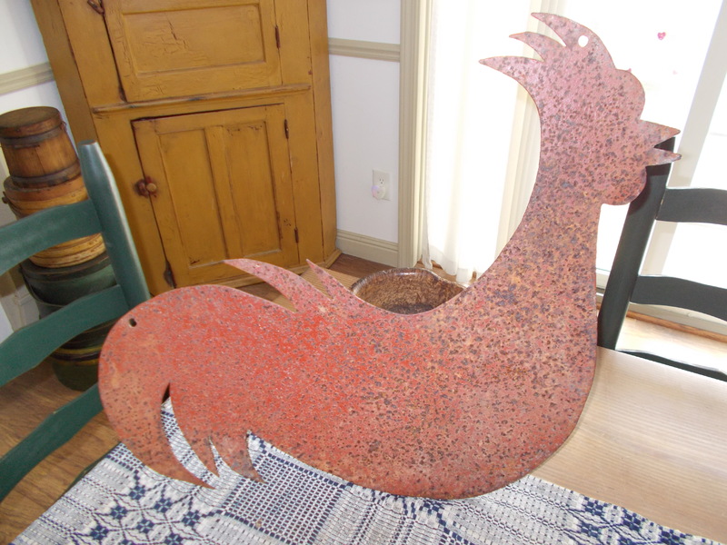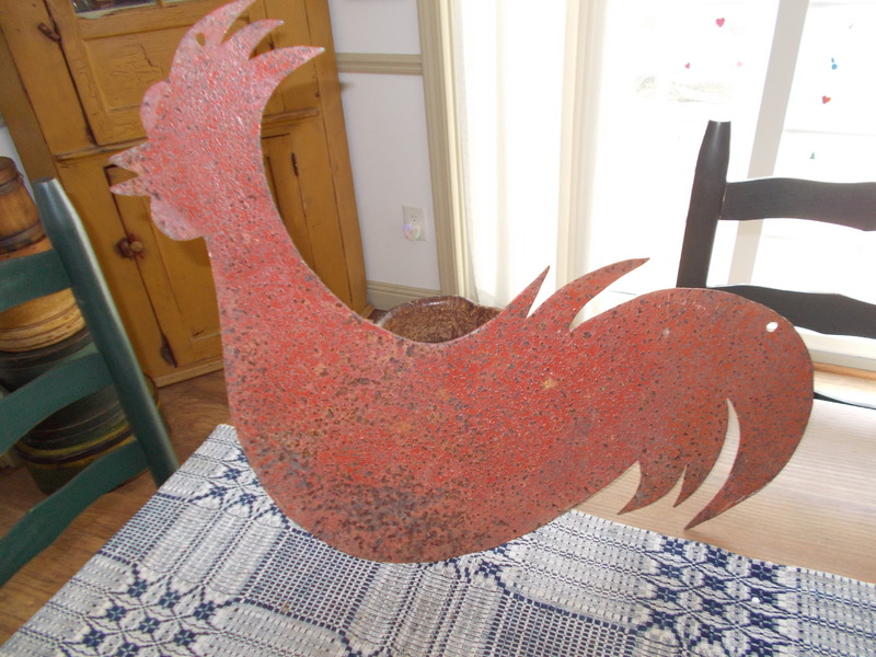 Offering a fabulous wall hanging rooster with great form and surface. Painted both sides with weathered surface. Measures 20 tall x 24" wide