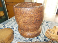 Offering a large and heavy burl mortar from a private collection here in Michigan. It measures 6" diameter x 7" tall and weighs over 3 lbs. Beautiful graining.