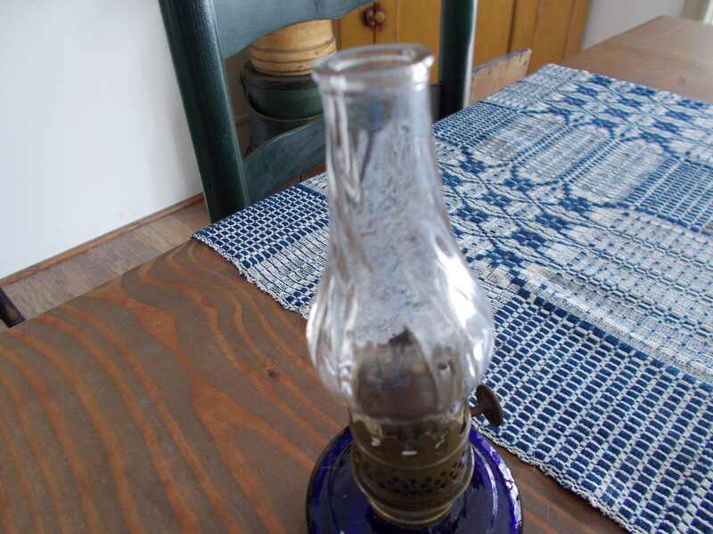 Offering a delightful little "chamberstick" with ribbed flass font, and cobalt blue base. Dated 1877. Excellent condition
