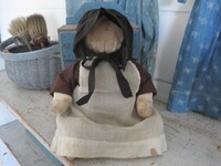 ANTIQUE, OHIO AMISH, RAG DOLL, HAND MADE, BUTTON JOINTED ARMS AND LEGS, SOFT STUFFED, PRIMITIVE AMERICAN COUNTRY FIND! I bought a very large collection of Pennsylvania and Ohio Amish, Dolls, Stuffed Toys, Long Stockings, Mittens, Pincushions, etc. Slowly I will be listing them on Ebay when I have time. APPROX: height is 11 1/2" CONDITION: spots, fading, along with wear and use that is expected with age