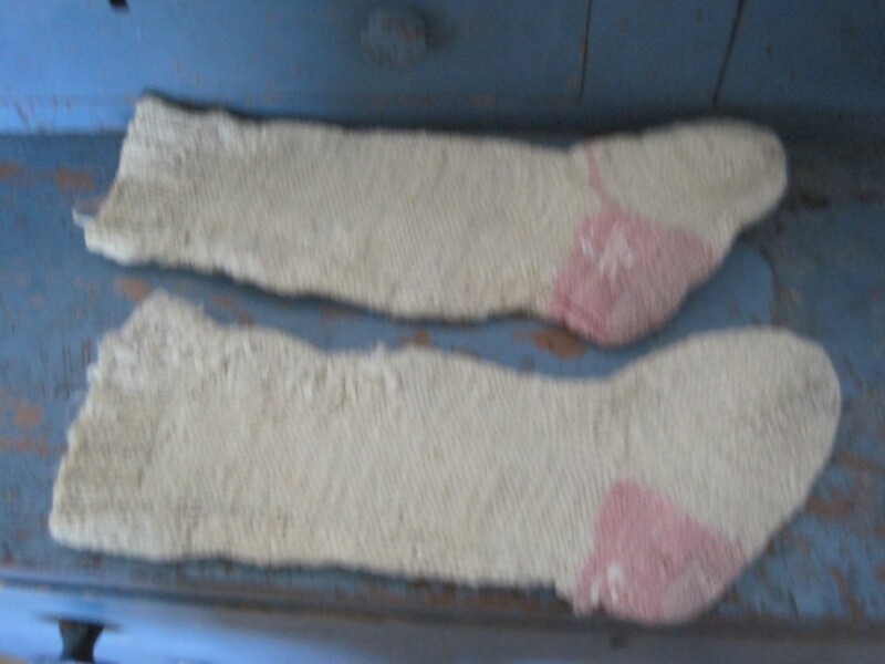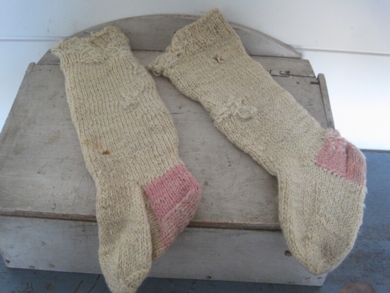 ANTIQUE, PENNSYLVANIA AMISH, WOOL FABRIC, CHILD'S STOCKINGS WITH " PROVENANCE: EMANUEL SCHWIDT FAMILY ADAMS COUNTRY" HAND MADE, IDEAL FOR CHRISTMAS TIME, PRIMITIVE AMERICAN COUNTRY FIND! I bought a very large collection of Pennsylvania and Ohio Amish, Dolls, Stuffed Toys, Long Stockings, Mittens, Pincushions, etc. Slowly I will be listing them on Ebay when I have time. APPROX: length is 11 1/2" and heel to toe 5" CONDITION: spots, fading, repairs , holes along with wear and use that is expected with age