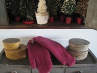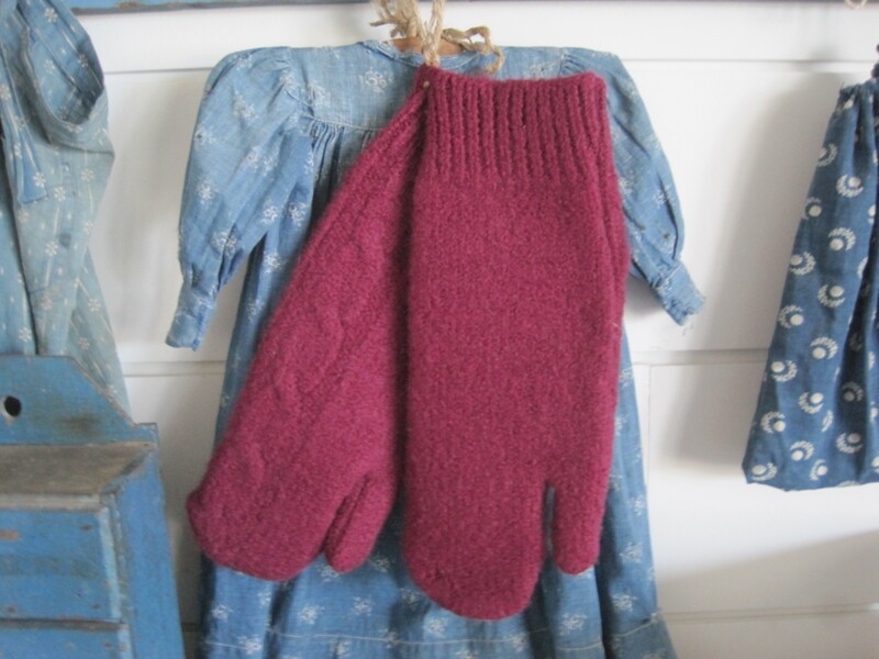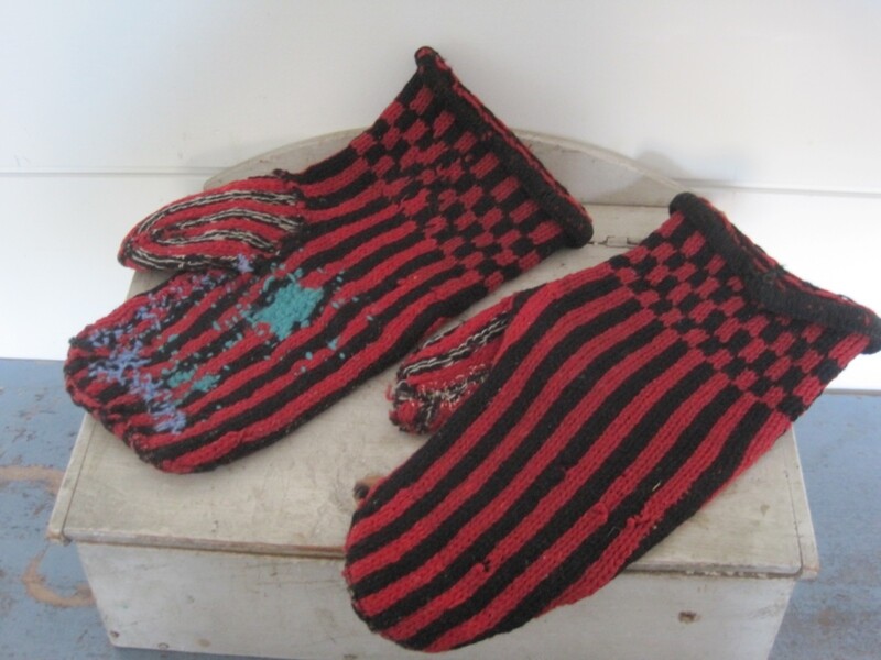 VINTAGE, OHIO AMISH, WOOL FABRIC, MITTENS, HAND MADE, GREAT COLORS FOR CHRISTMAS TIME, PRIMITIVE AMERICAN COUNTRY FIND! I bought a very large collection of Pennsylvania and Ohio Amish, Dolls, Stuffed Toys, Long Stockings, Mittens, Pincushions, etc. Slowly I will be listing them on Ebay when I have time. APPROX: height is 11 1/4" and width is 4 1/8" CONDITION: spots, fading, holes, along with wear and use that is expected with age