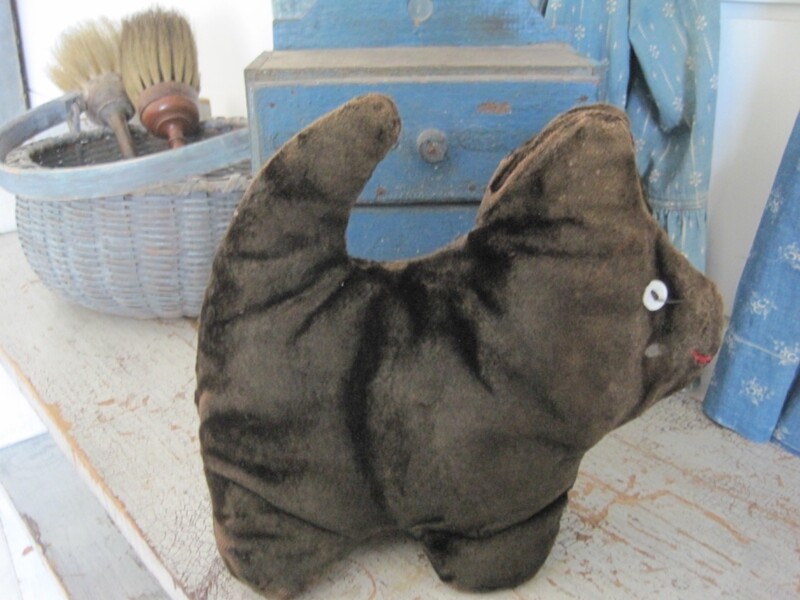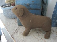 VINTAGE, PENNSYLVANIA, VELVET FABRIC DOG, FOLK ART HAND MADE, PRIMITIVE AMERICAN COUNTRY FIND! I bought a very large collection of Pennsylvania and Ohio Amish, Dolls, Stuffed Toys, Long Stockings, Mittens, Pincushions, etc. Slowly I will be listing them on Ebay when I have time. APPROX: height is 8"; length is 8" and width is 2 1/2" CONDITION: spots, fading, repairs, along with wear and use that is expected with age