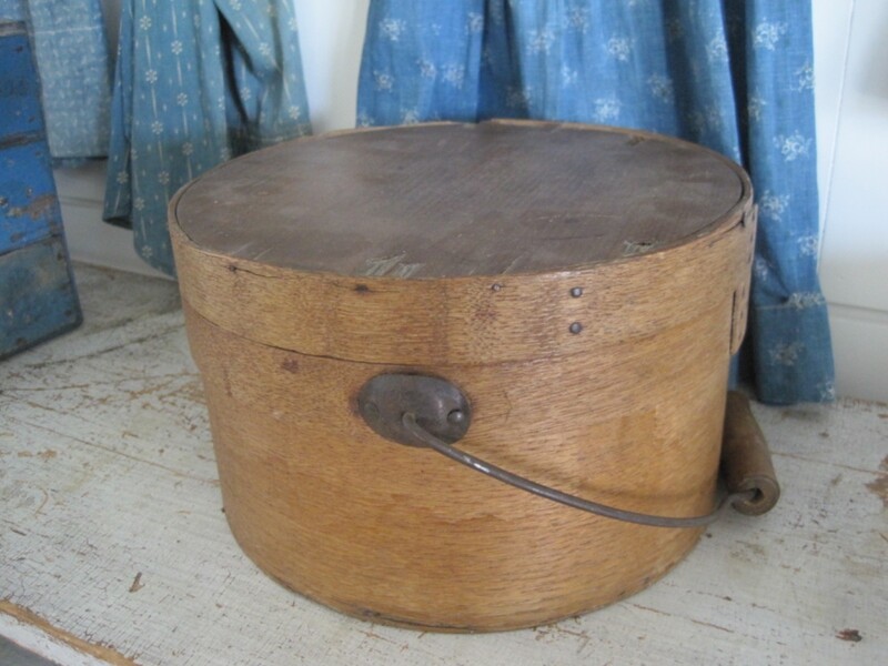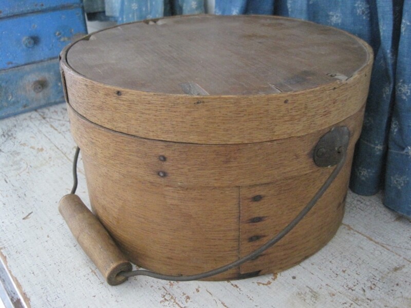 ANTIQUE, THE BEST ATTIC PATINA, WOOD, BAIL HANDLE, PANTRY BOX WITH A DOULBE RIM (HARDER TO FIND), GREAT PRIMITIVE AMERICAN FIND! This Antique Amazing Attic Patina Bail Handle Pantry Box is Perfect for Display! APPROX: on top side to side is 8 3/4" and height is 5 1/4" CONDITION: scratches, stains, dents, chips, glue repair on bottom board, along with wear and use as expected by
