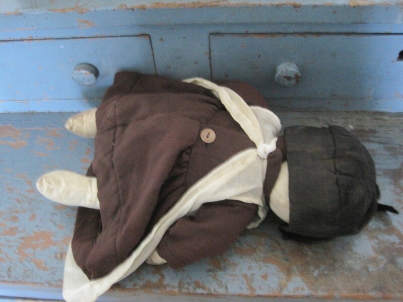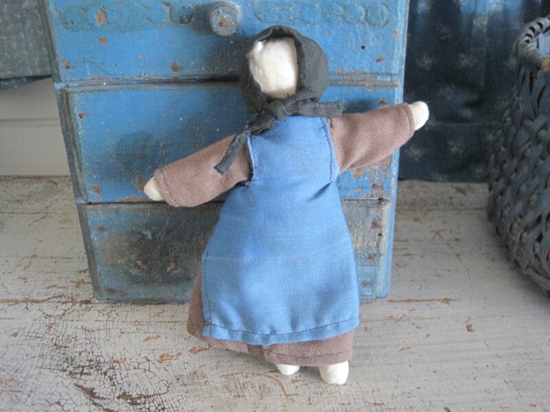 VINTAGE, OHIO AMISH, LITTLE CLOTH CHURCH RAG DOLL, HAND MADE, PRIMITIVE AMERICAN COUNTRY FIND! I bought a very large collection of Pennsylvania and Ohio Amish, Dolls, Stuffed Toys, Long Stockings, Mittens, Pincushions, etc. Slowly I will be listing them on Ebay when I have time. APPROX: height is 6 3/8" CONDITION: spots, fading, repairs, along with wear and use that is expected with age