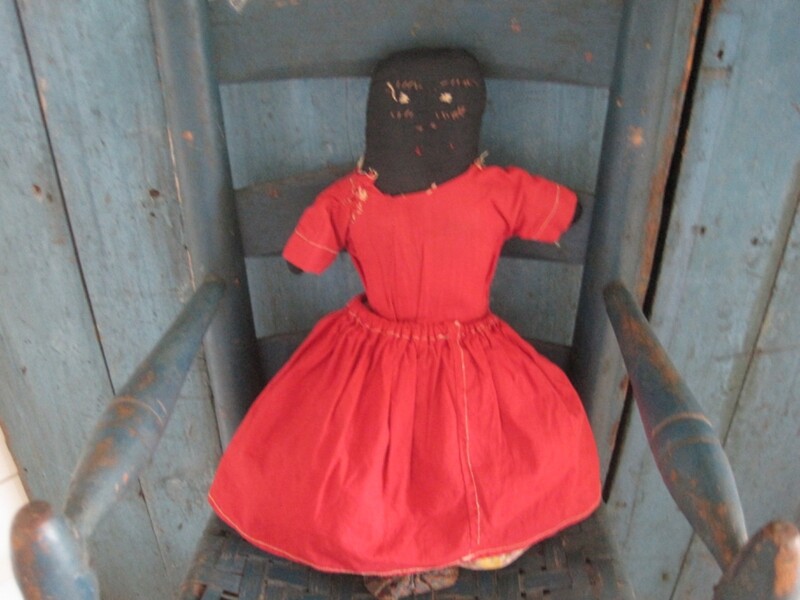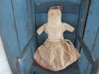 ANTIQUE, FOUR HAND STITCHED FACES, BOTH ON FRONT OF BACK OF THE DOLLS, HAND MADE, CLOTH TOPSY-TURVY RAG DOLL, PRIMITIVE AMERICAN COUNTRY FIND! APPROX: height is 14 3/4" CONDITION: spots, holes, fading, along with wear and use that is expected with age
