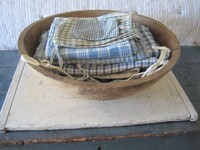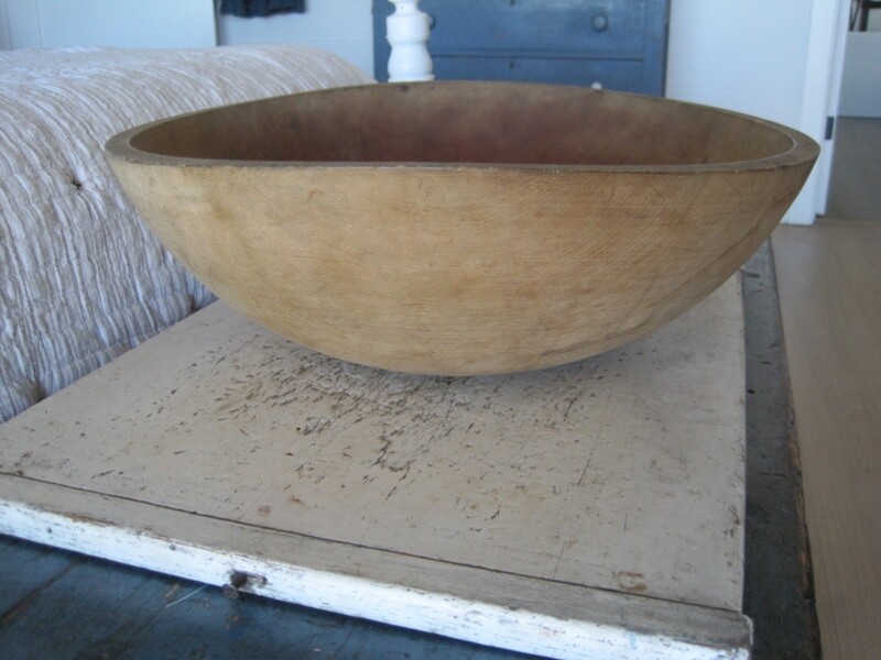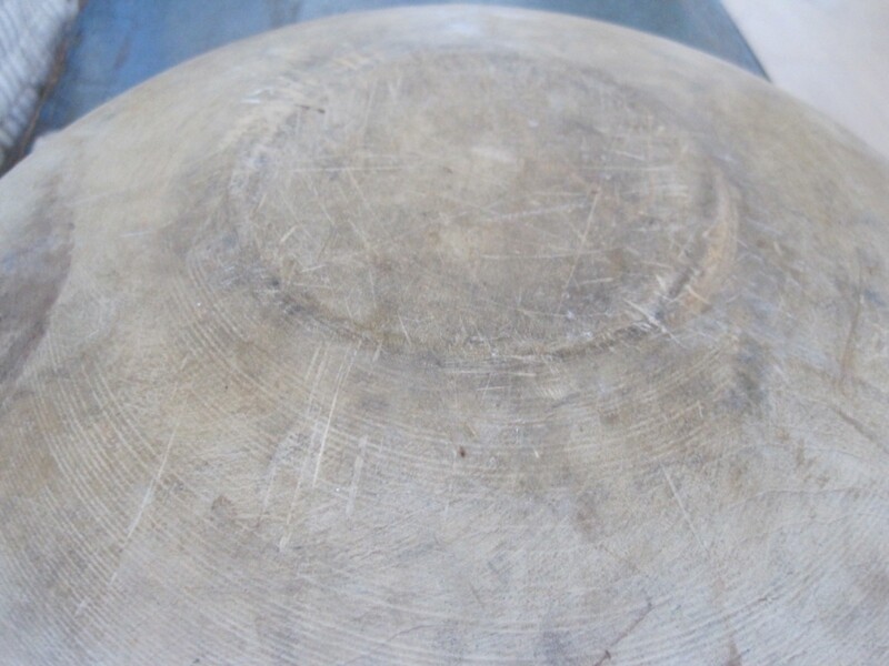 ANTIQUE, PRIMITIVE, LARGE, HEAVY, OUT OF ROUND WOODEN BOWL, LOVELY ATTIC PATINA, GREAT AMERICAN COUNTRY FIND! This Wonderful Antique Large, Heavy, Wooden Bowl is Perfect for Display! APPROX: on the top side to side is 17" by 16 7/8" with a height of 6" CONDITION: scratches, stains, along with wear and use as expected by age