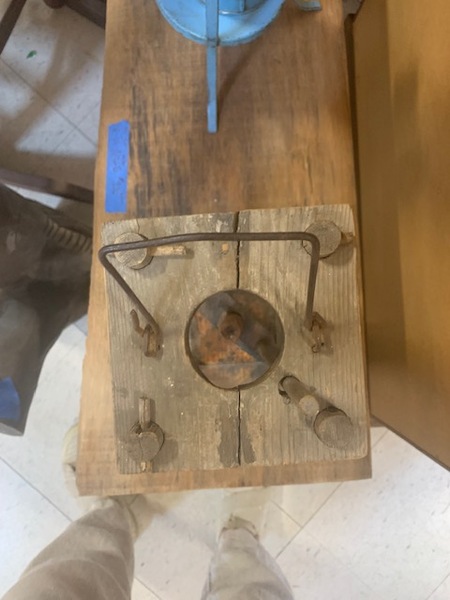 This heavy hand wrought iron candle holder was made for a particular purpose given the way it was constructed. Notice the spike which could be driven into rock or wood and the base with one side squared off. Also it was made to have the ability to raise or lower the candle. Great piece measuring 6 1/2 " tall. Other pics available if interested.