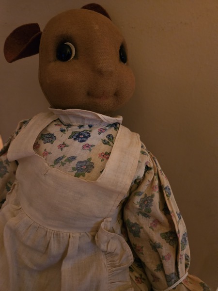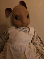Uncle Wigley's sweet Nurse Jane Fuzzy Wuzzy cloth Doll. 19" tall soft sculpture Doll by Georgene Averill 1940's. Hand sewn apron over calico dress and bloomers. Pressed cloth face with felt ears, , and stitched joints. Vintage . Price includes shipping in the continental US.